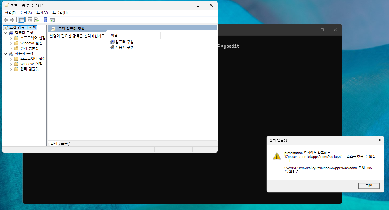 - gpedit 실행시 스크립트 버그 창이 뜨네요...