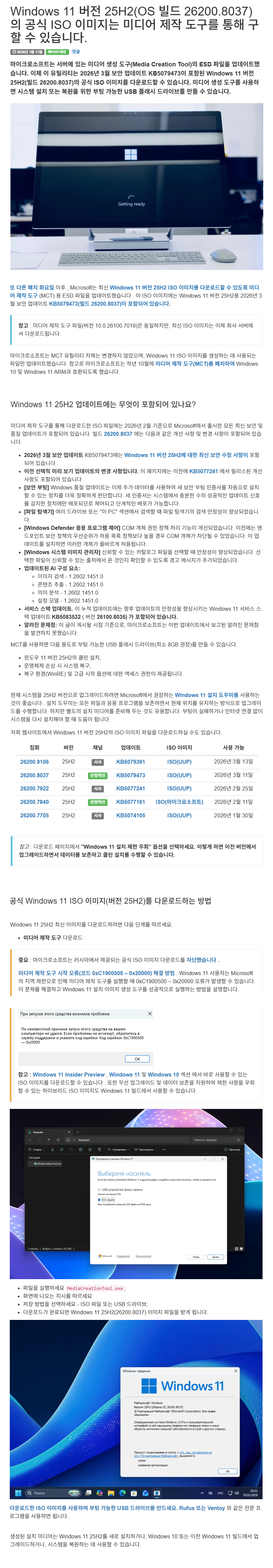 이번달 보안 업데이트가 포함된 최신 ISO를 만들수 있습니다.