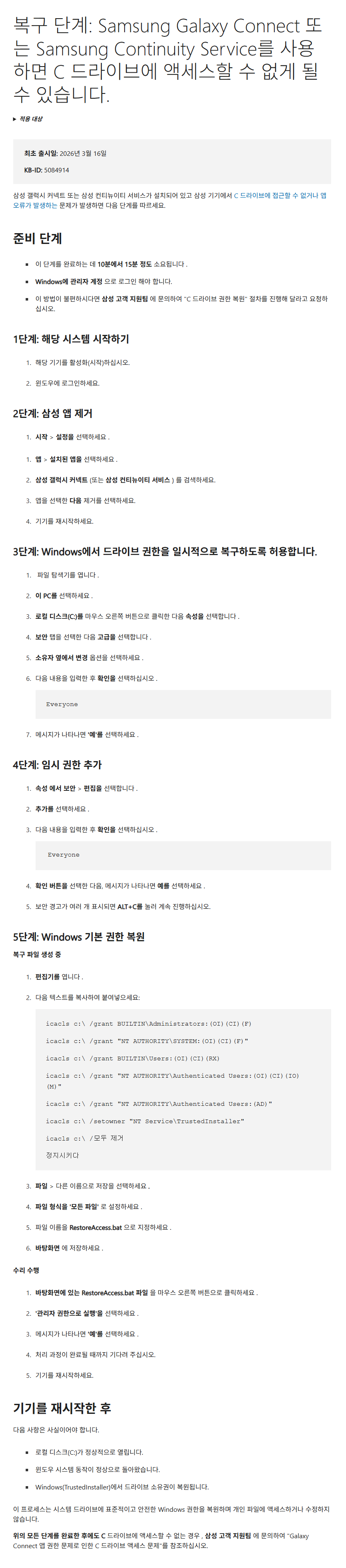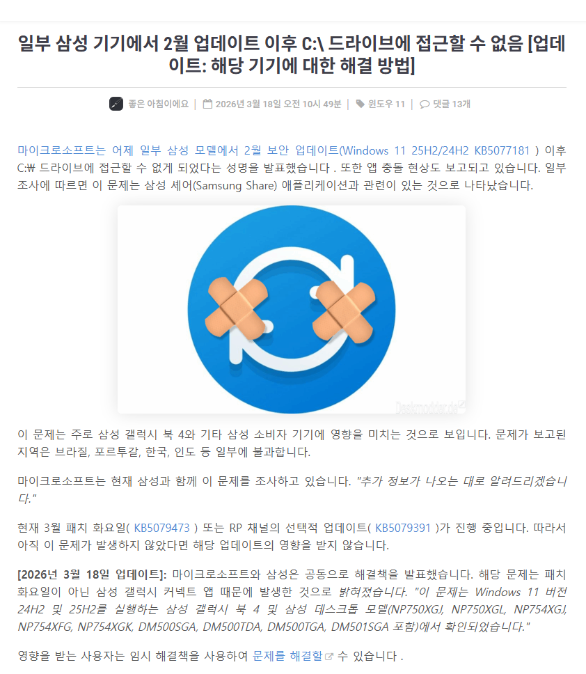 | 마이크로소프트: 일부 삼성 PC에서 윈도우 11 사용자가 C: 드라이브에 접근할 수 없음 (3) | 2026.03.16 |