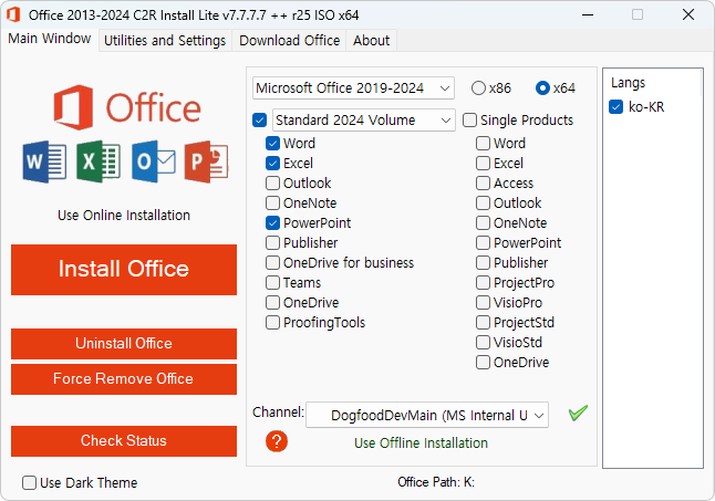 Office 2024 소매 제품 온라인 설치 프로그램:
