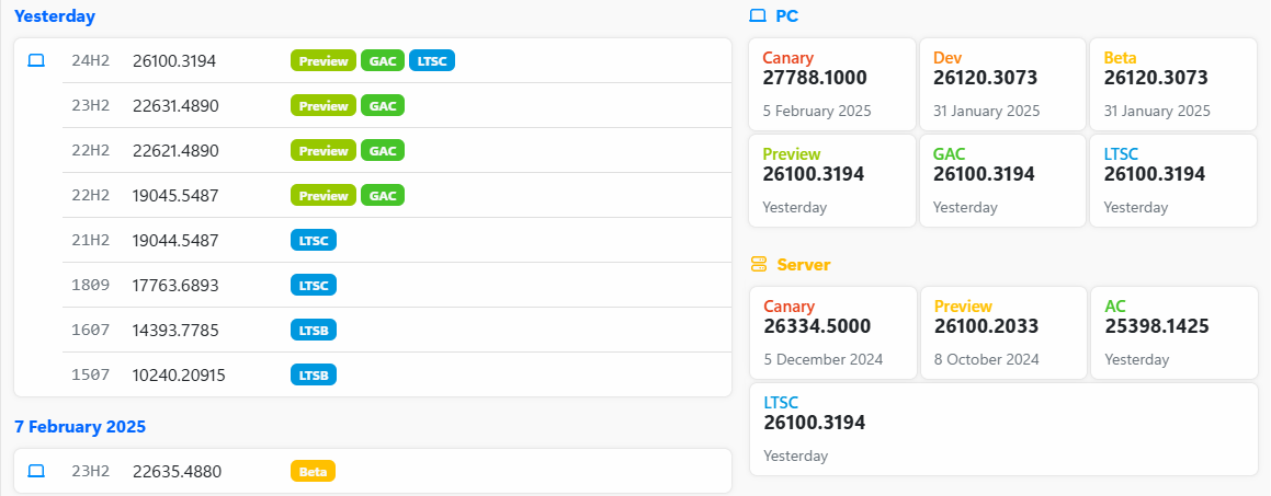 ○ 일반 사용자 채널 = Windows Server 2025 : 빌드 26100.3194 (= 일반 사용자 빌드)