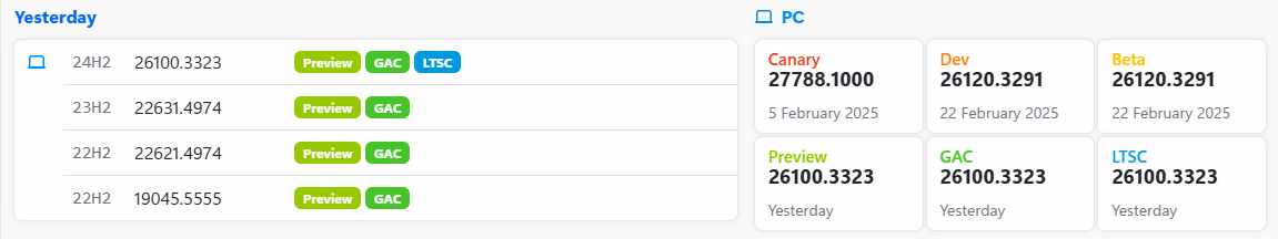 ○ 미리보기 채널 [Release Preview] = Windows 11 : 빌드 26100.3025 (= 참가자 빌드)