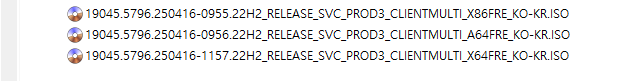 아래 파일은 UUP dump에서 만든 스크립트를 이용해서 MS에서 배포하는 파일(ESD, cab파일)로 만든 순수 ISO 파일입니다.