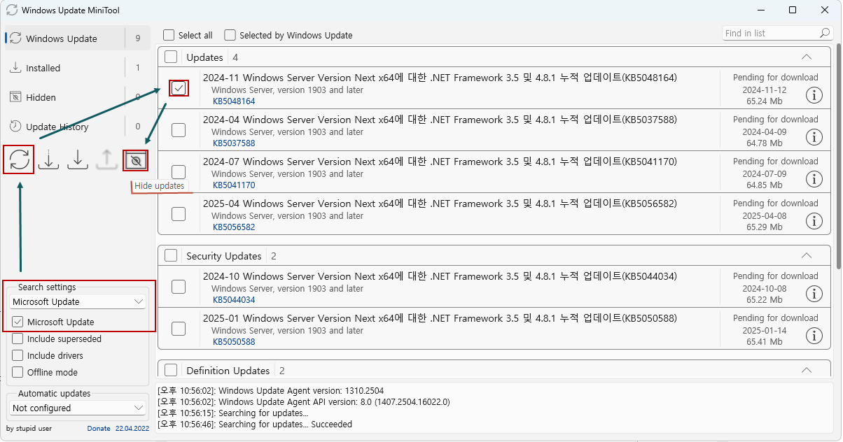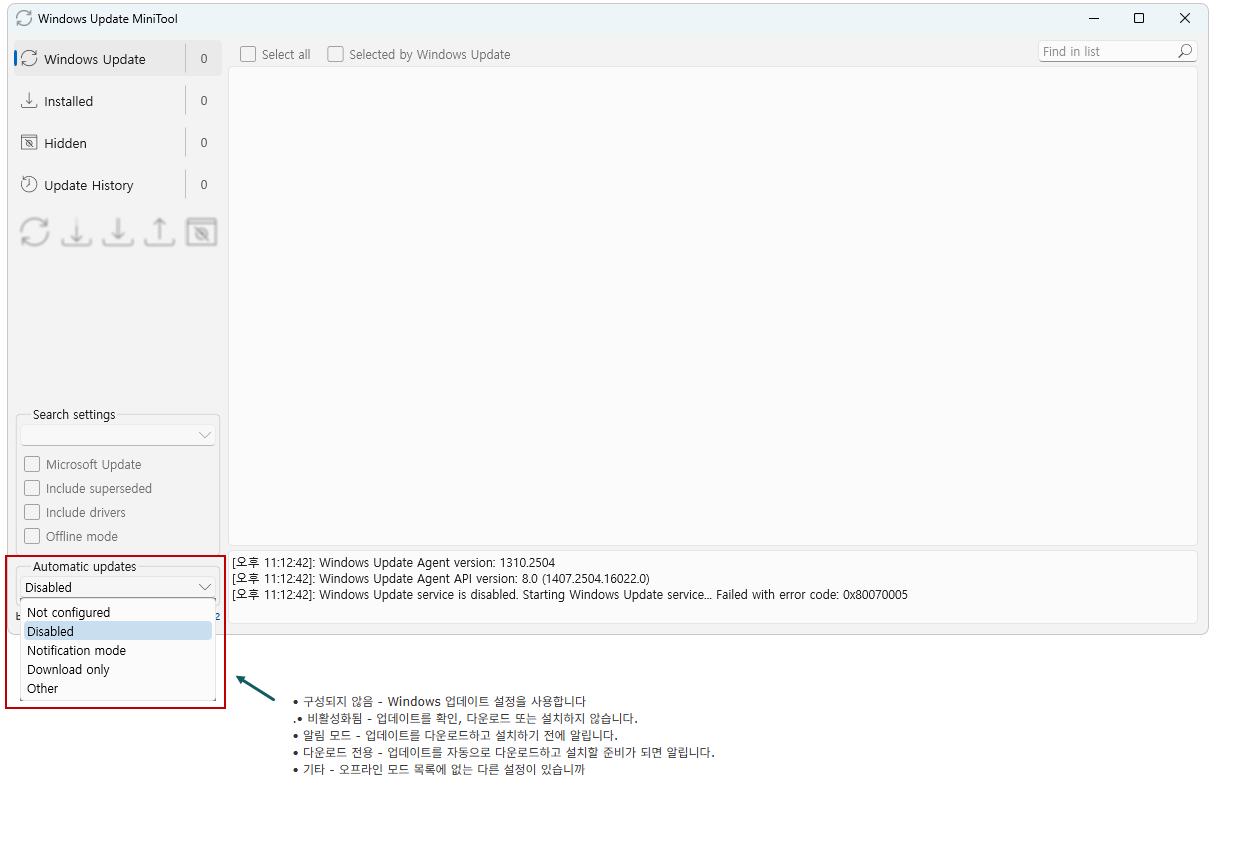 현재 시스템에서 자동업데이트에 뜨는 업데이트를 숨기는 프로그램입니다.