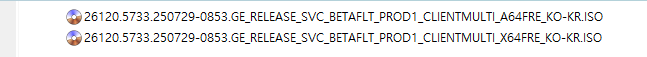 아래 파일은 UUP dump에서 배포하는 스크립트를 이용해서 MS에서 배포하는 파일(ESD, cab파일)로 만든 순수 ISO 파일입니다.