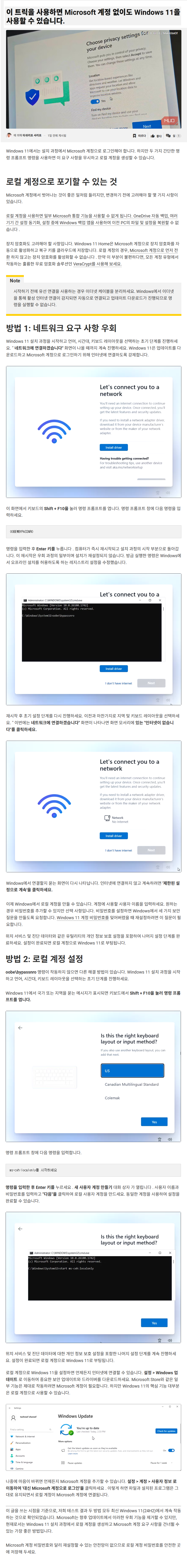 Windows 11을 Microsoft 계정 없이 로컬 계정으로 설치할 수 있는 방법