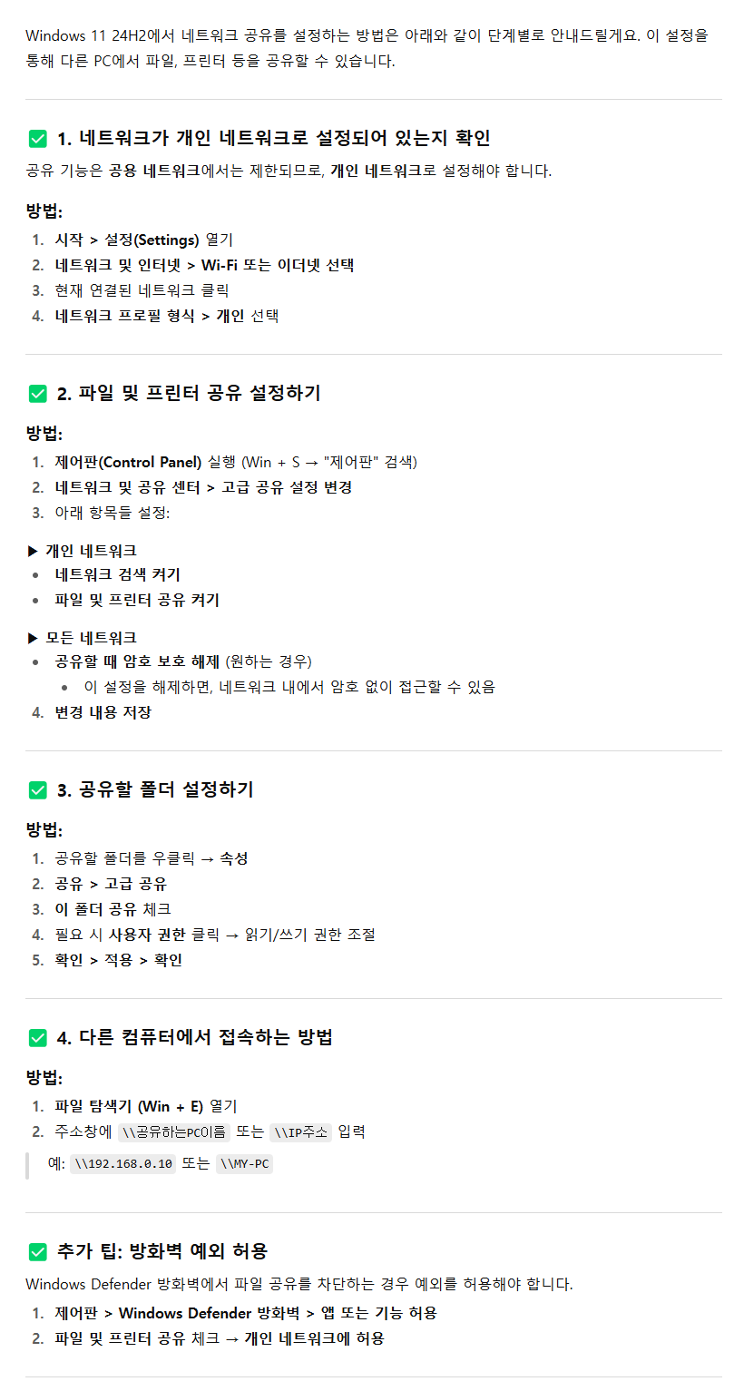 Windows 11 24H2 네트워크 공유 설정하는 방법