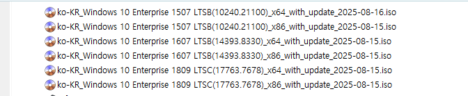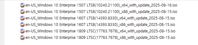 Windows 10 1809_1607_1507 LTSB / LTSC MSDN + 누적업데이트 통합판 (Updated 2025-08) [배포 종료]
