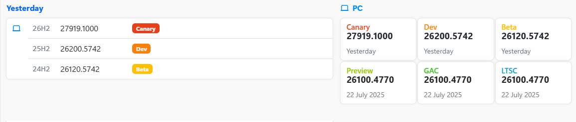 ○ 카나리아 채널 [Canary] = Windows 11 26H2 : 빌드 27919.1000 (= 참가자 빌드)