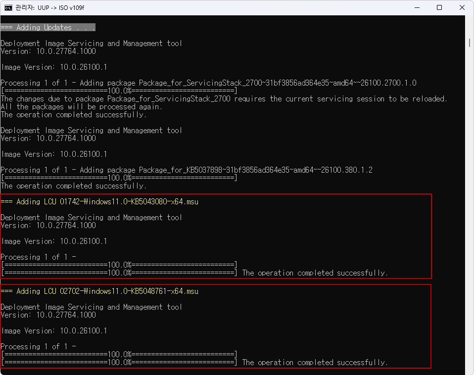 1 중 1을(를) 처리하는 중 - Package_for_RollupFix~31bf3856ad364e35~amd64~~22000.160.1.0 패키지를 추가하는 중