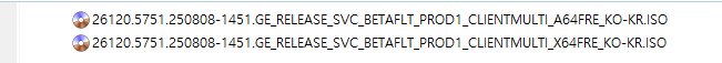 Windows 11, 24H2 Beta 채널 Insider Preview 빌드 누적 업데이트 파일(KB5064071) : 26120.xxxx → 26120.5751 [ = Beta 채널 참가자 전용] [배포 종료]