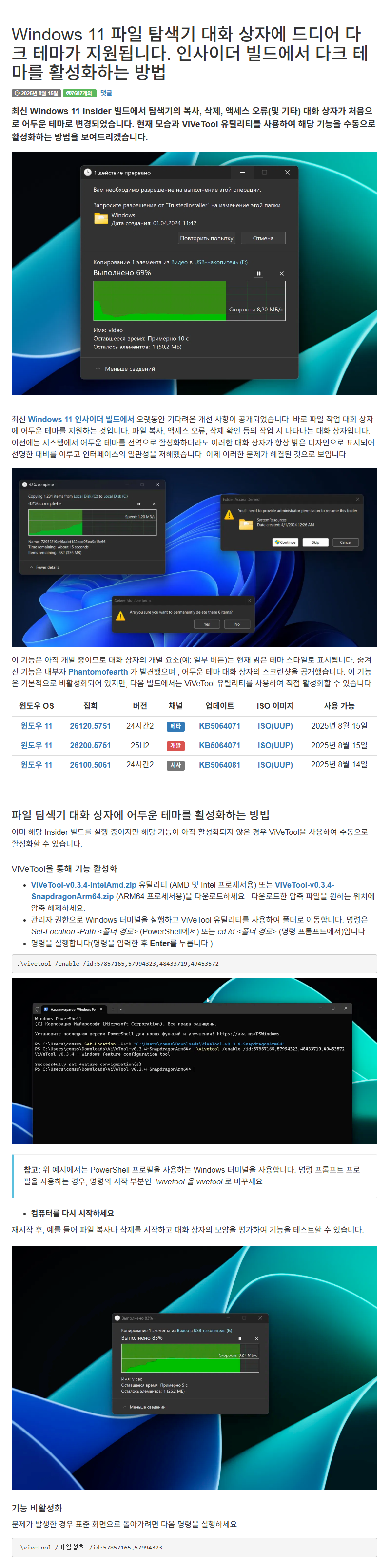 Windows 11 Dev/Beta 채널 프리뷰 빌드에서 파일 탐색기 대화 상자에 드디어 다크 테마가 지원하는 방법