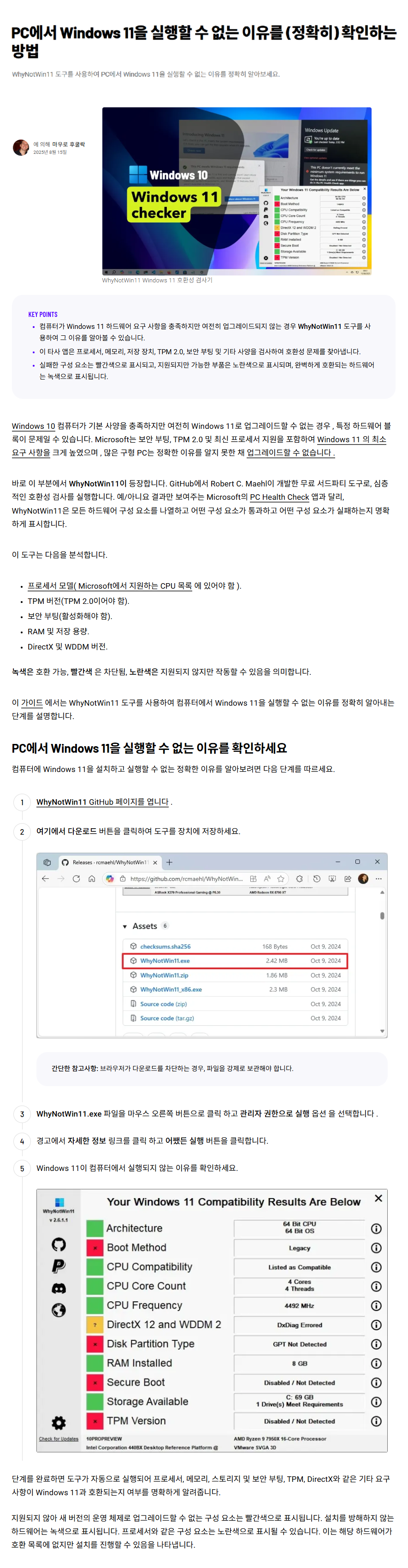 그래도 한번 PC가 Windows 11을 실행하는데 있어서, 어떤 상태인지 확인하면 좋을 겁니다.