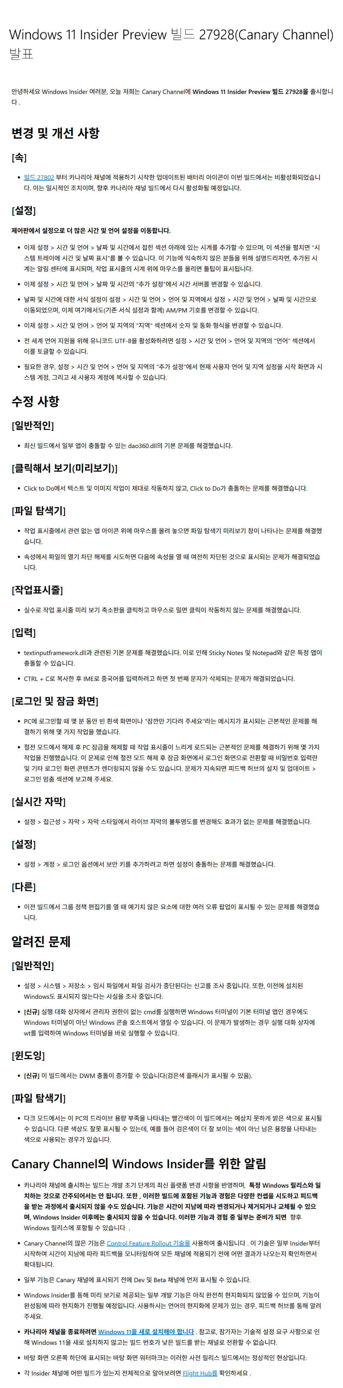 Windows vNext, Canary 채널 Insider Preview 빌드 27928.1 설치 완료
