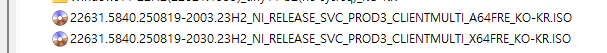 아래 파일은 UUP dump에서 만든 스크립트를 이용해서 MS에서 배포하는 파일(ESD, cab파일)로 만든 순수 ISO 파일입니다.