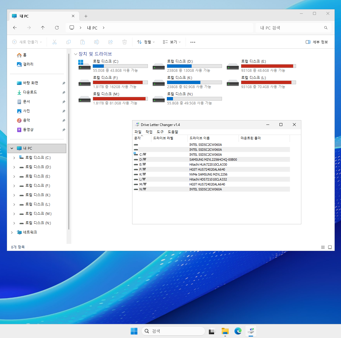 아래 처럼 또 하드디스크 드라이브 명이 뒤죽박죽 되어 있네요...