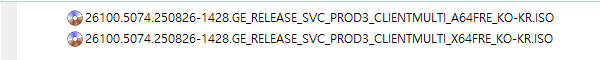 아래 파일은 UUP dump에서 배포하는 스크립트를 이용해서 MS에서 배포하는 파일(ESD, cab파일)로 만든 순수 ISO 파일입니다.