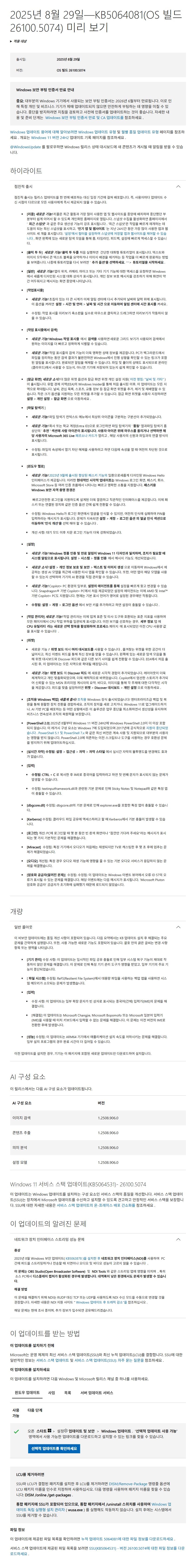 KB5064081 = 최신 누적 업데이트(26100.5074) (Last Cumulative update : LCU) (2025-08-29)