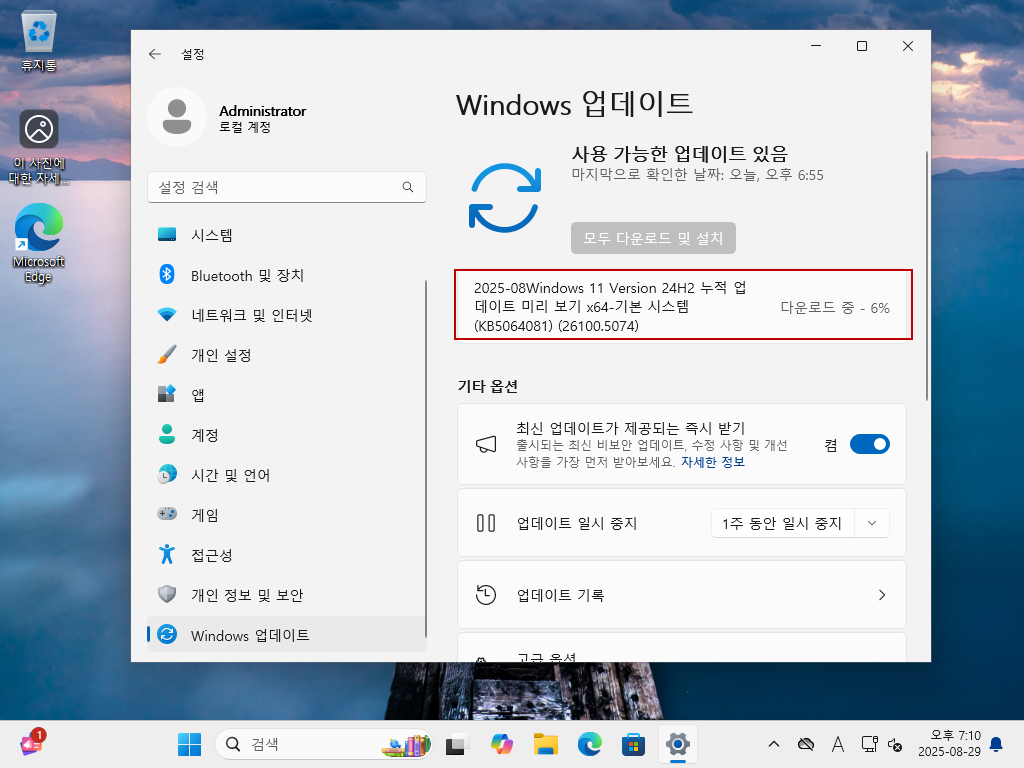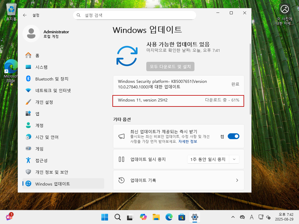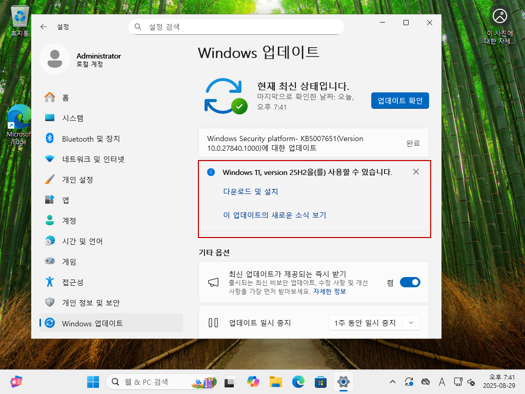 [Microsoft 공식 출시에 앞서 Windows 11 2025 업데이트(버전 25H2) 미리보기를 자동업데이트로 받는 방법] 테스트