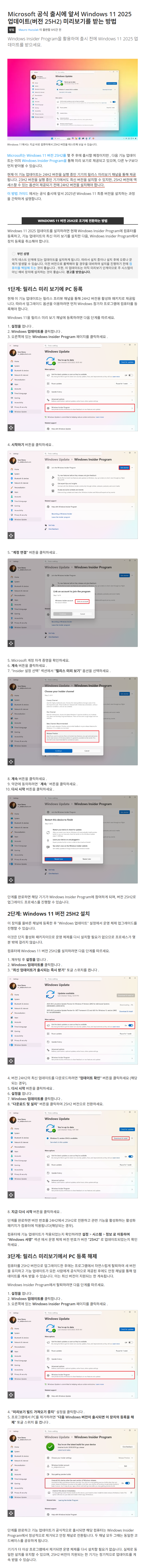 Microsoft 공식 출시에 앞서 Windows 11 2025 업데이트(버전 25H2) 미리보기를 자동업데이트로 받는 방법 🏀