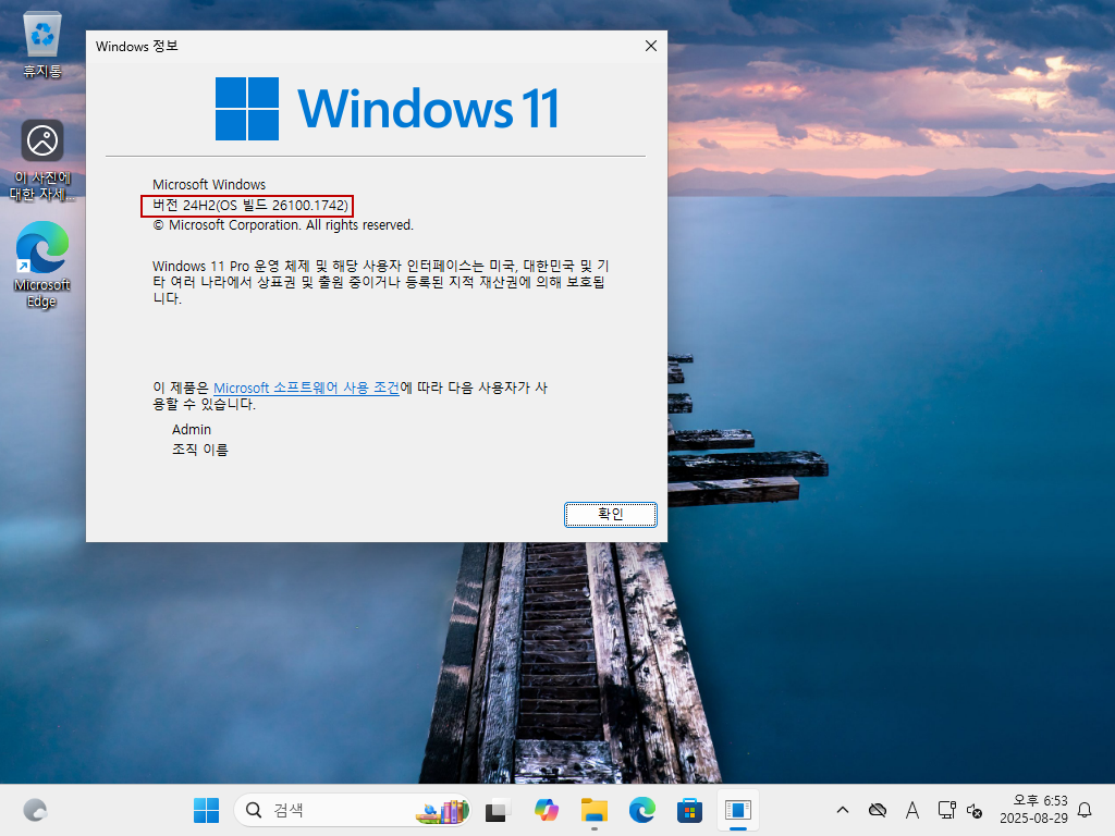 1. 현재 빌드는 24H2 빌드 26100.1742 정식 순수 버전이 설치된 상태