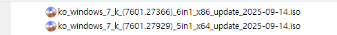 Windows 7 K MSDN + 누적 업데이트 통합판 (빌드 7601.27929) 6in1 (Updated September 2025) [배포 종료]