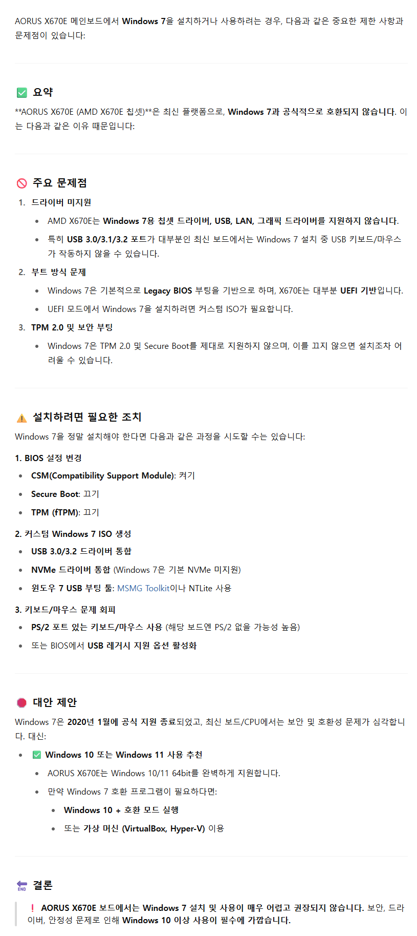 CSM 기능은 있으나 완벽하게 지원하지 않는 보드는 윈도우7 설치 실패할 수 있습니다.