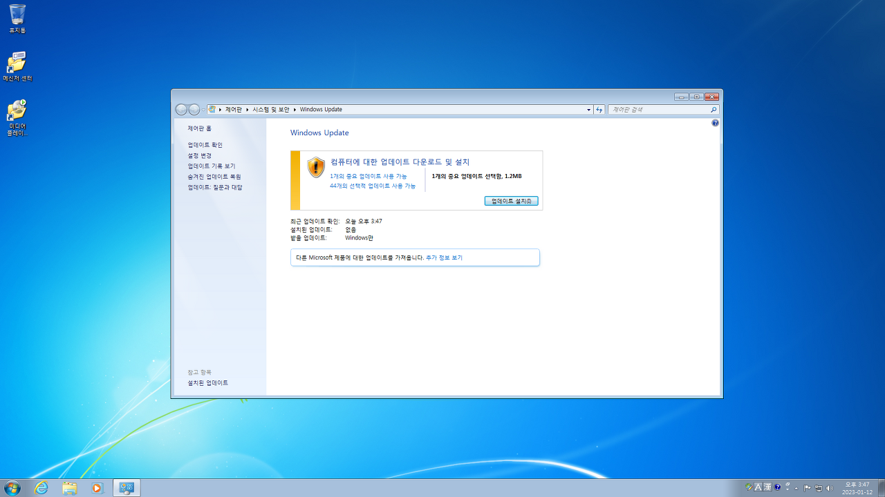 업데이트 목록에 뜨는 KB971033은 정품인증 관련 업데이트이기 때문에 설치안해도 됩니다.
