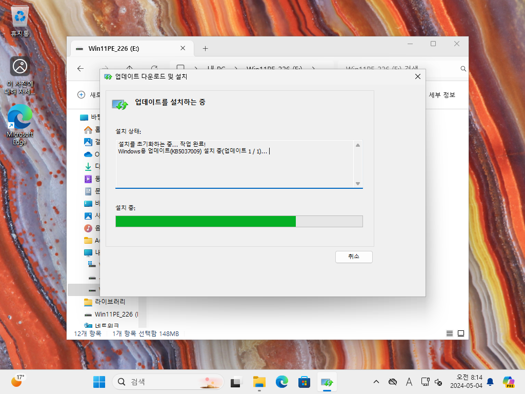 1 중 1을(를) 처리하는 중 - Package_for_RollupFix~31bf3856ad364e35~amd64~~22000.160.1.0 패키지를 추가하는 중[===========================74.0%========== ]