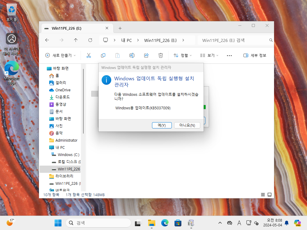 3) 또는 cab 파일로 설치하려면 위의 msu 파일을 압축을 풀어서