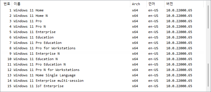 아래 파일은 UUP dump에서 배포하는 스크립트를 이용해서 MS에서 배포하는 파일(ESD, cab파일)로 만든 순수 ISO 파일입니다.