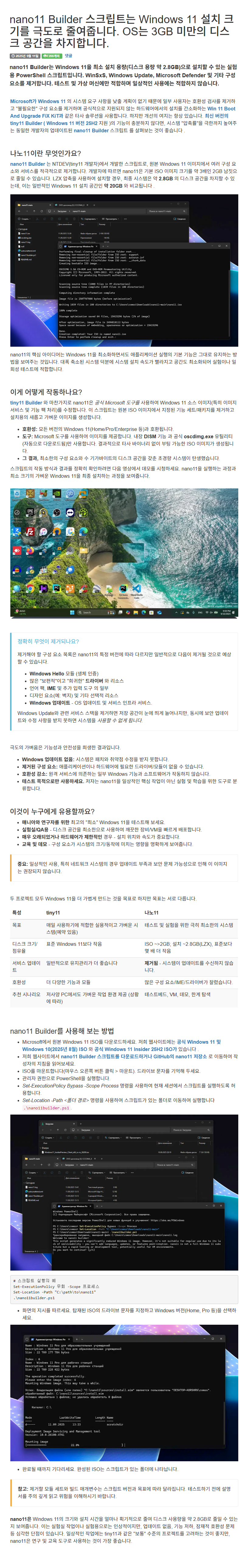 Tiny11 빌드(앱제거 버전)가 이름을 바꿔서 Nano11 빌드로 배포되었습니다.