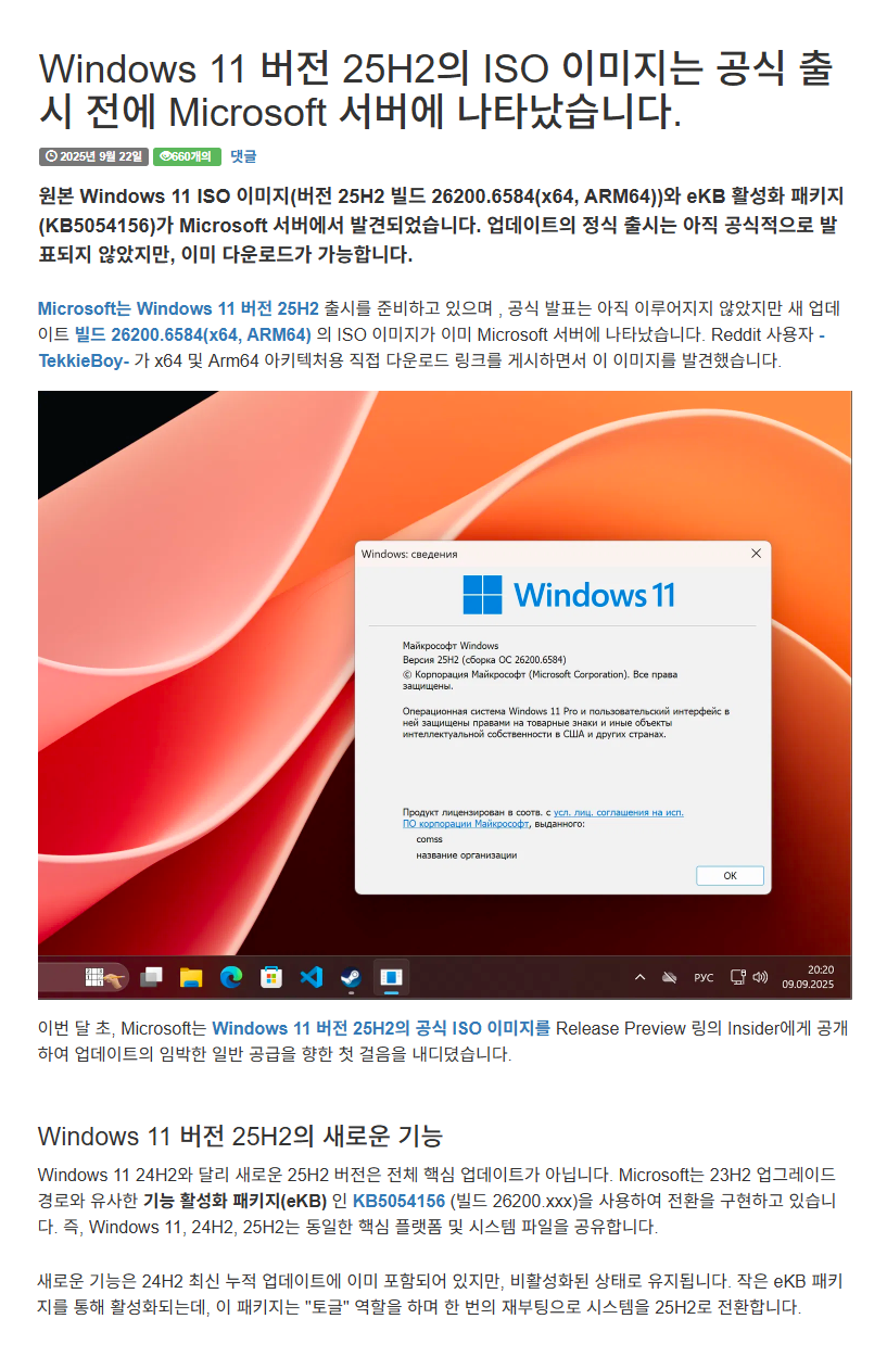 Windows 11 25H2 ISO가 Microsoft 공식 출시 전에 제공됩니다. [한글/영문판] --- Windows 11 25H2 정식 빌드(=26200.6584) 🏀🥎🏐