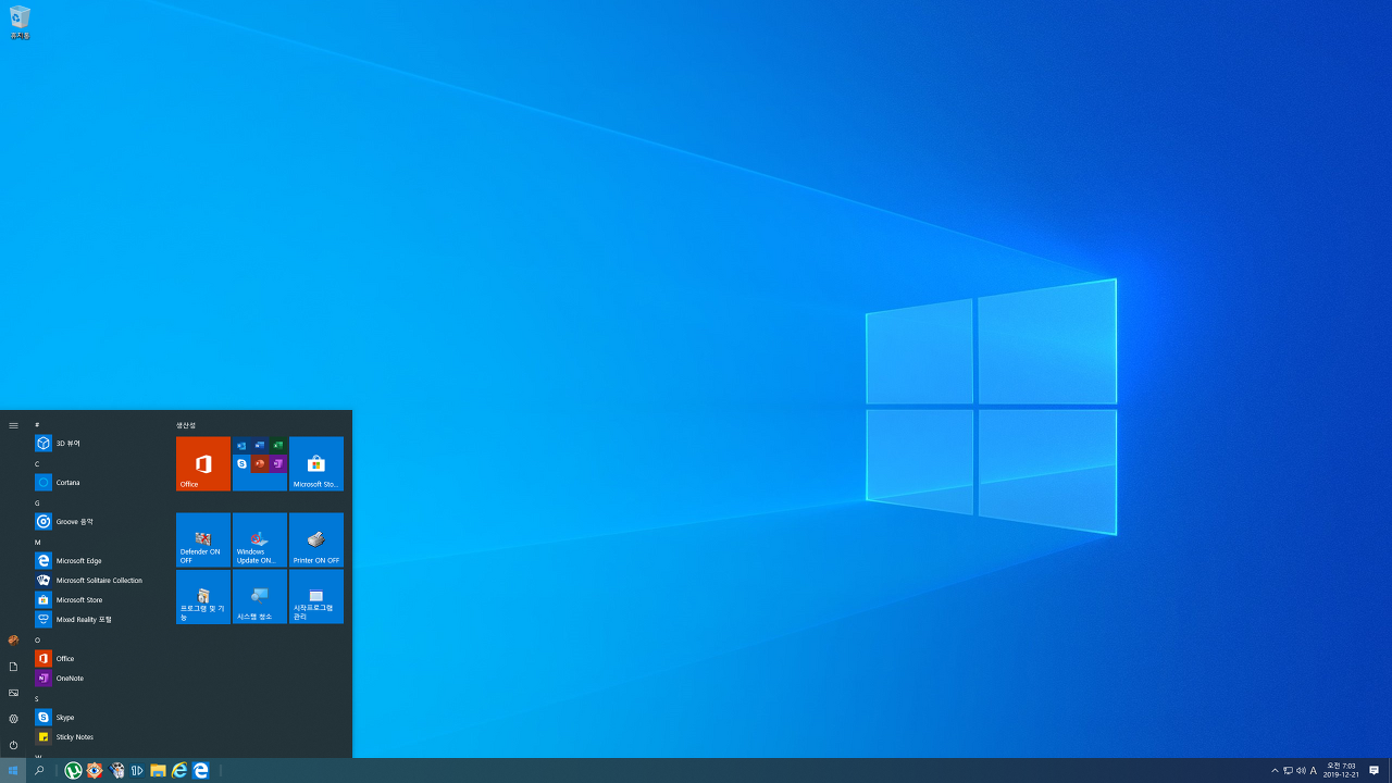 ⇒ 시작 메뉴 타일에 보시면 "Defender ON OFF, Windows Update ON OFF, Print Service ON OFF" 프로그램이 있습니다.