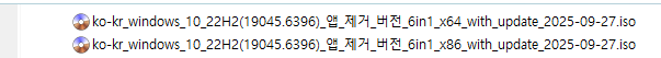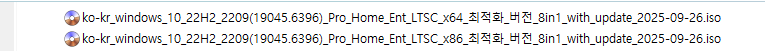 KB5066198 = 최신 누적 업데이트(19044.6396 / 19045.6396) (Last Cumulative update : LCU) ( 2025-09-25 )