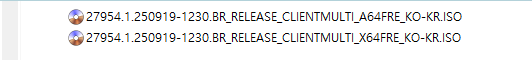 아래 파일은 UUP dump에서 배포하는 스크립트를 이용해서 MS에서 배포하는 파일(ESD, cab파일)로 만든 순수 ISO 파일입니다.
