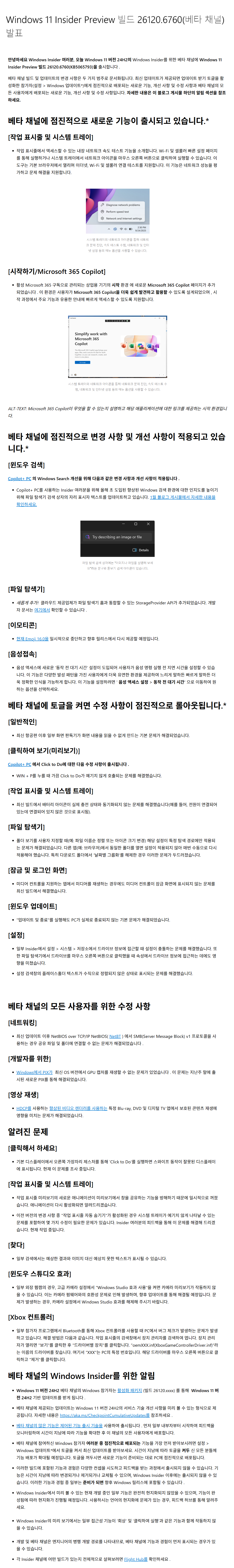 Windows 11, 24H2 Beta 채널 Insider Preview 빌드 누적 업데이트 파일(KB5065793) : 26120.x → 26120.6760 [배포 종료]