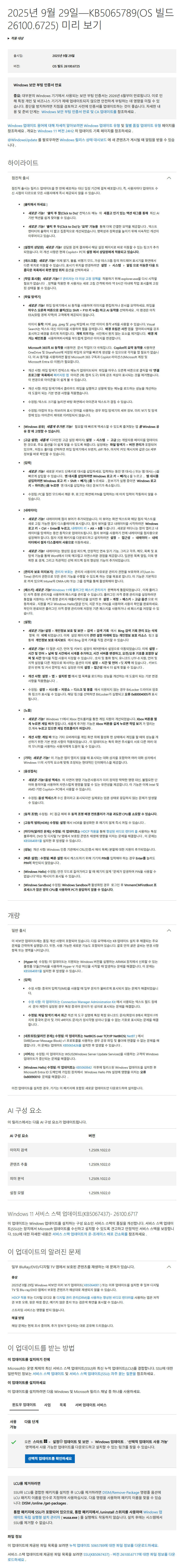 ○ 미리보기 채널 [Release Preview] = Windows 11 25H2 : 빌드 26200.6718 (= 참가자 빌드)
