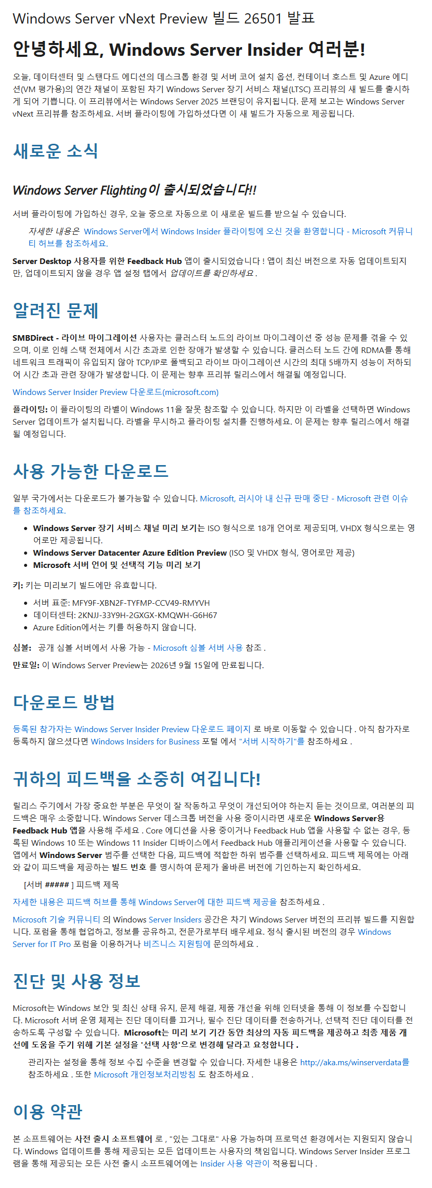 Windows Server vNext LTSC Preview - Build 26501 Korean