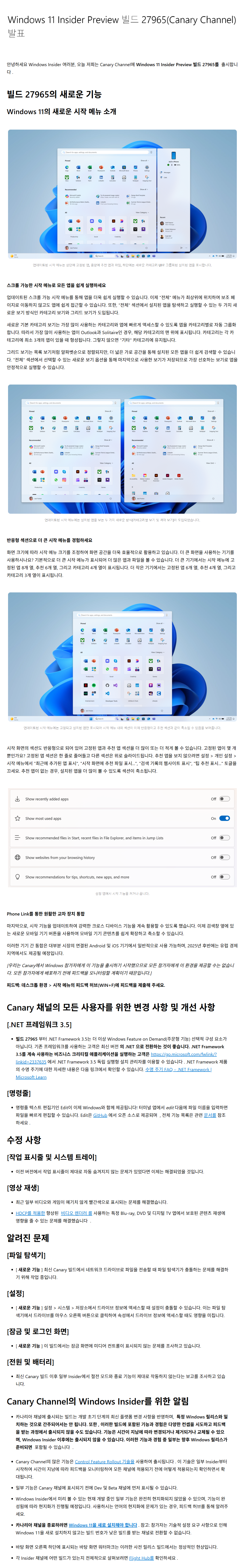○ 카나리아 채널 [Canary] = Windows 11 26H2 : 빌드 27965.1 (= 참가자 빌드)
