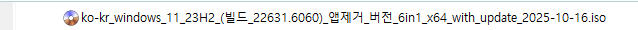 ※ Windows 11, 23H2, 빌드 22631.6060 최적화 버전 ※