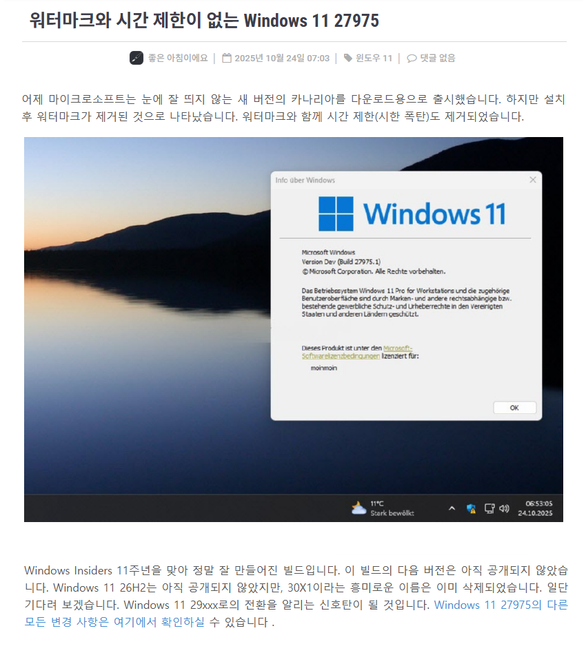 27975 빌드에서 워터마크와 평가판 만료기간이 없어졌다고 합니다..ㅎ