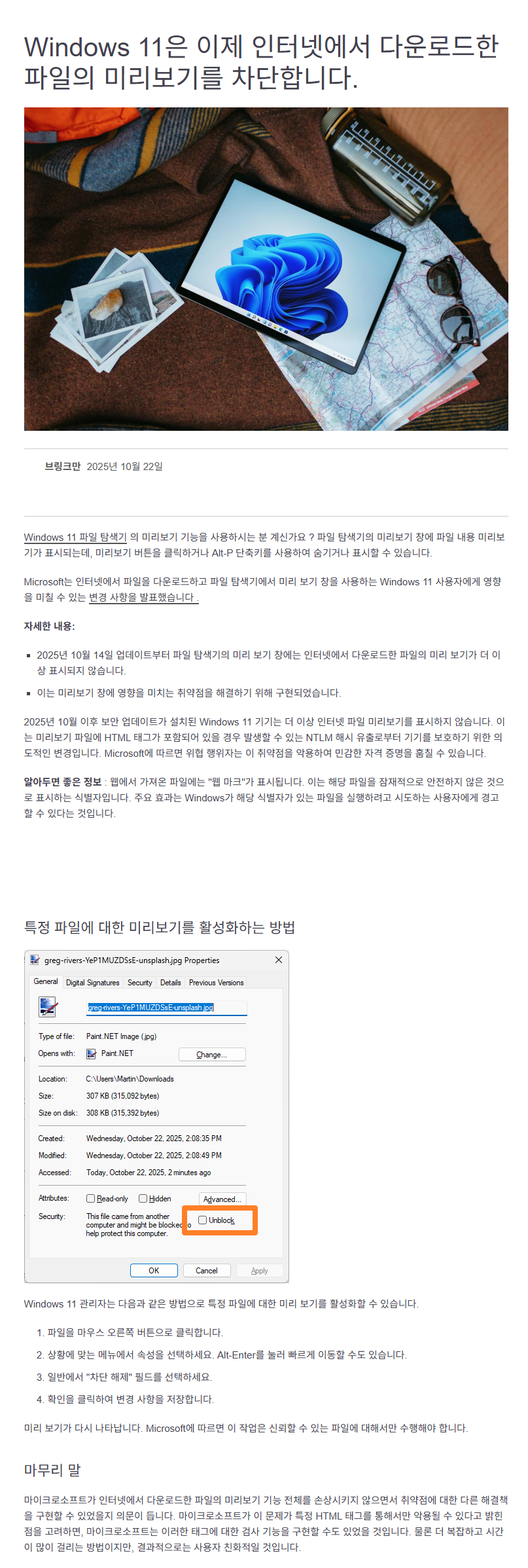 Windows 11은 이제 인터넷에서 다운로드한 파일의 미리보기를 차단합니다.