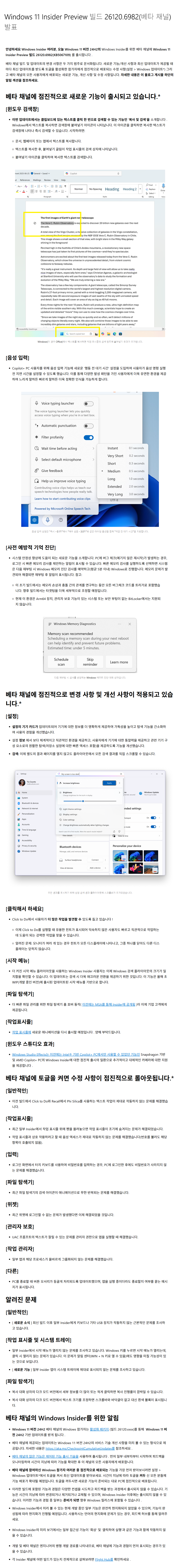 이 업데이트는 인사이드 참가자들에게 테스트 및 피드백 목적으로 배포되는 빌드입니다.