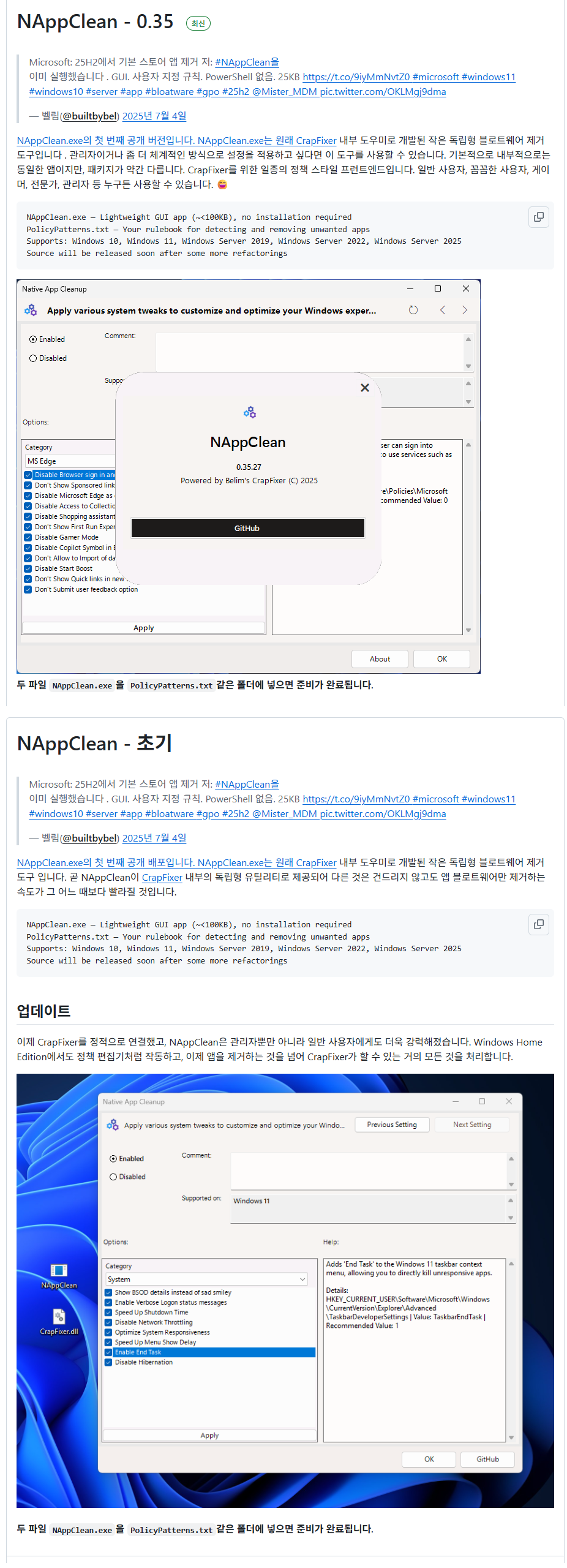 Windows 11 25H2 표준 앱 패키지 제거 (NAppClean)