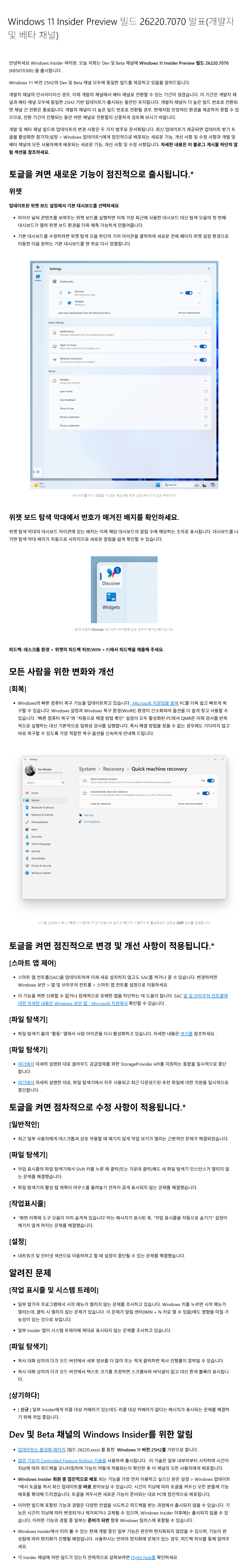 Windows 11 Insider Preview 빌드 26220.7070 가 배포되었습니다.