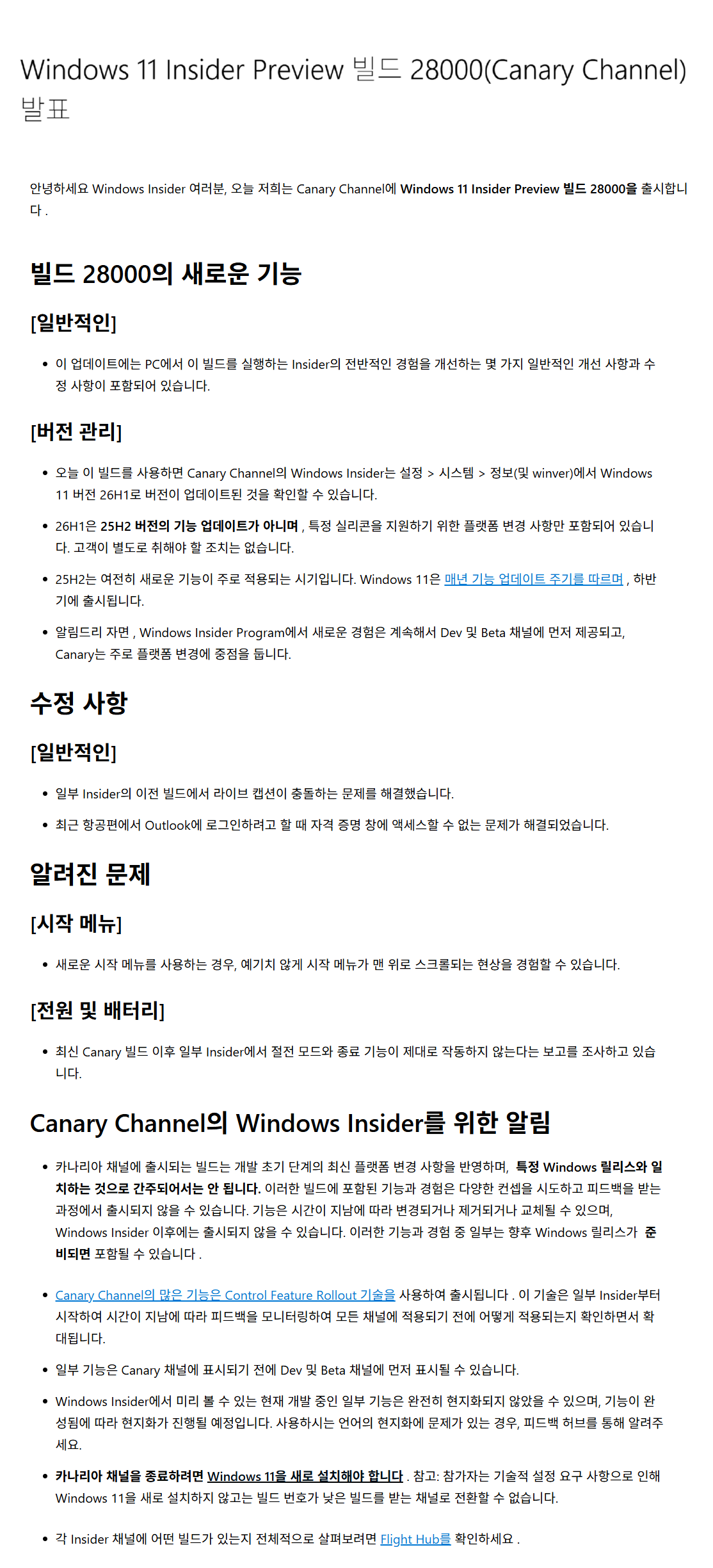 지난주 파이프라인 테스트를 진행했고, 이번 주에는 또 다른 인사이더 빌드로 정상화되었습니다. Windows 11 빌드 28000이며, 아직 29xxx는 아닙니다. 하지만 첫 번째 전환(개발자 -> 베타)이 이미 시작되었으므로 다음 전환이 곧 진행될 예정입니다.