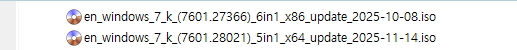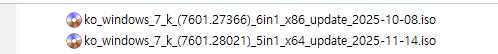 Windows 7 K MSDN + 누적 업데이트 통합판 (빌드 7601.28021) 6in1 (Updated November 2025) [배포 종료]