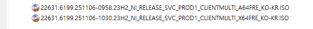 아래 파일은 UUP dump에서 만든 스크립트를 이용해서 MS에서 배포하는 파일(ESD, cab파일)로 만든 순수 ISO 파일입니다.
