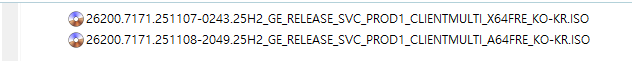 KB5068861 = 최신 누적 업데이트(26200.7171) (Last Cumulative update : LCU) (2025-11-11)